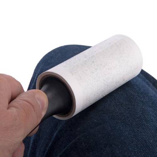 Praktyczna rolka do czyszczenia ubrań, tapicerki z sierści i nieczystości. Dzięki dwustronnej taśmie przylepnej zbiera sierść, kłaczki i pyłki. Jako kompletny zestaw z dwoma zapasowymi rolkami