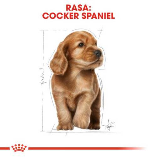 - Pełnoporcjowa karma dla szczeniąt rasy cocker spaniel do 12 miesiąca życia.