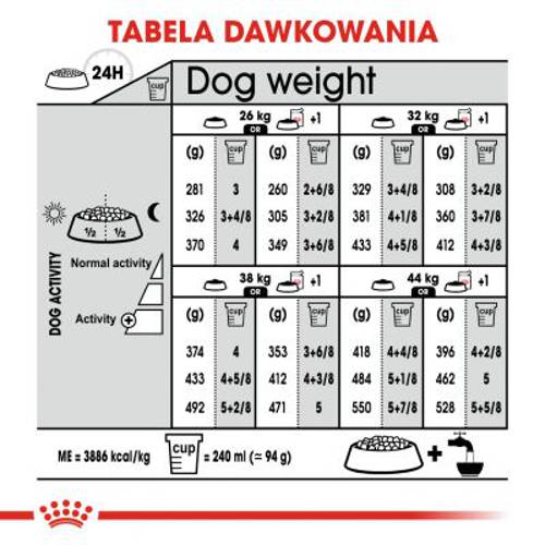 - Karma pełnoporcjowa dla dużych (26–44 kg), dorosłych psów (od 15 miesiąca życia) o wrażliwym układzie trawiennym