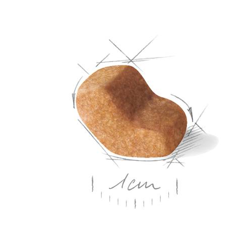 Specjalnie opracowany krokiet (kształt, rozmiar, tekstura), dostosowany do brachycefalicznej budowy psów rasy shih tzu, ułatwia chwytanie i zachęca psa do żucia karmy.