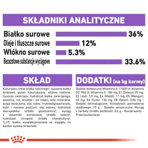 Wszystkie produkty marki Royal Canin są poddawane kompleksowym kontrolom jakości, aby zagwarantować optymalną jakość karm, które spełnią indywidualne potrzeby żywieniowe Twojego kota i będą odpowiednio dopasowane do jego stylu życia. Oznacza to, że podając swojemu kotu karmę Royal Canin Serilised 7+, zapewniasz mu pełnowartościowe i zbilansowane pożywienie.