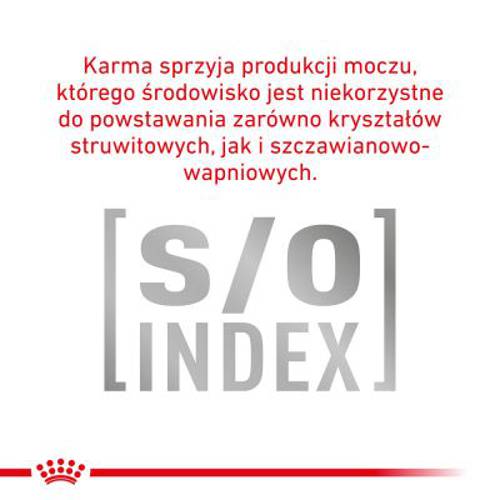 - Indeks S/O: karma tworzy niekorzystne środowisko moczowe dla powstawania kamieni moczowych.