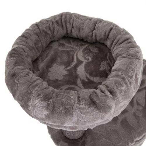 - Elegancki szary drapak o pięknym kwiatowym wzorze na materiale i z przestronnym legowiskiem