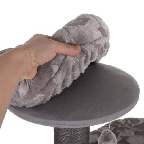 Duże legowisko z rantem jest przestronne, odpowiednie dla kotów dużych ras i idealne do obserwacji otoczenia, odpoczynku i drzemania. Gruby i wysoki słupek wykonany z naturalnego szarego sizalu doskonale sprawdzi się podczas codziennej pielęgnacji pazurów.