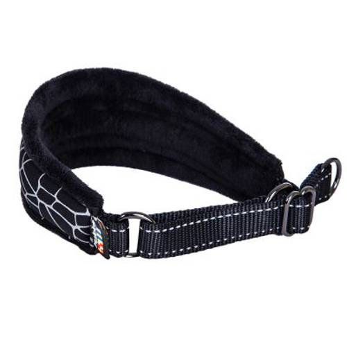 Szeroka obroża dla chartów i innych psów o wąskiej szyi, praktyczne zakładanie przez głowę, odblaskowe detale, bardzo miękka wyściółka, wysoki komfort noszenia, z poliamidu, poliestru i neoprenu