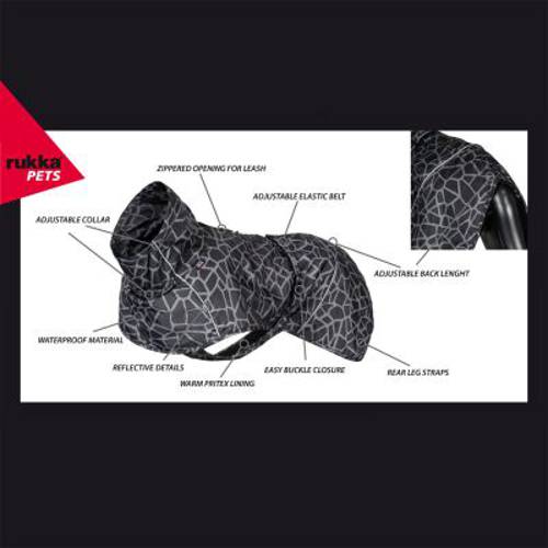 Nadal szukasz idealnej osłony przeciwdeszczowej dla swojego pupila? Płaszcz przeciwdeszczowy Rukka® Hayton Warm to właściwy wybór, jeśli chodzi o stylowy wygląd i optymalny komfort. Wierzchnia warstwa płaszcza jest wiatro- i wodoodporna; wnętrze wyściełane jest oddychającym polarem Pritex, który ogrzeje Twojego psa w chłodne dni.Elegancki płaszcz przeciwdeszczowy można dopasować do kształtu ciała psa na końcu kołnierza i szyi, a także w pasie i na długości. Dzięki elastycznemu pasowi z zapięciem na zatrzask, płaszcz przeciwdeszczowy Rukka® Hayton można łatwo założyć bez konieczności podnoszenia przednich nóg psa. Płaszcz przeciwdeszczowy dla psa jest również wyposażony w odblaskową lamówkę, która zapewnia lepszą widoczność w ciemności.