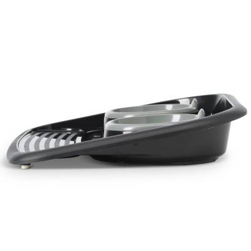 Okrągłe miseczki są łatwe do wyjęcia i posiadają mały uchwyt, które pozwalają zachować czyste ręce. Zarówno miski jak i podkładka wykonane są w 100% z polipropylenu pochodzącego z recyklingu - idealne rozwiązanie dla świadomych ekologicznie właścicieli zwierząt. Obie miski nadają się do mycia w zmywarce do 65°C, podkładkę można myć ciepłą wodą.