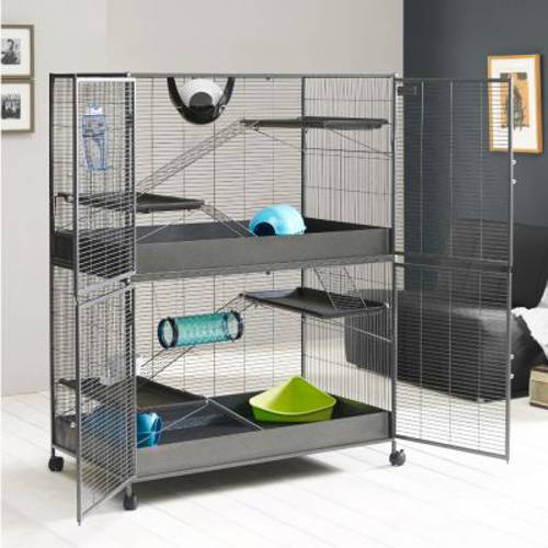 - Duża przestrzeń i nieskończone możliwości wspinania się po kratkach: idealna dla młodych szczurów.