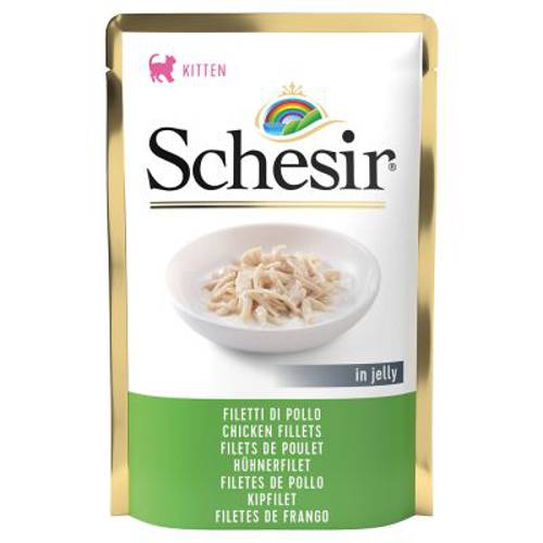Karma mokra Schesir Kitten w saszetkach to uzupełniająca karma wysokiej jakości dla kociąt, w 100% naturalna karma, z tauryną, nienasyconymi kwasami tłuszczowymi, witaminami A i E
