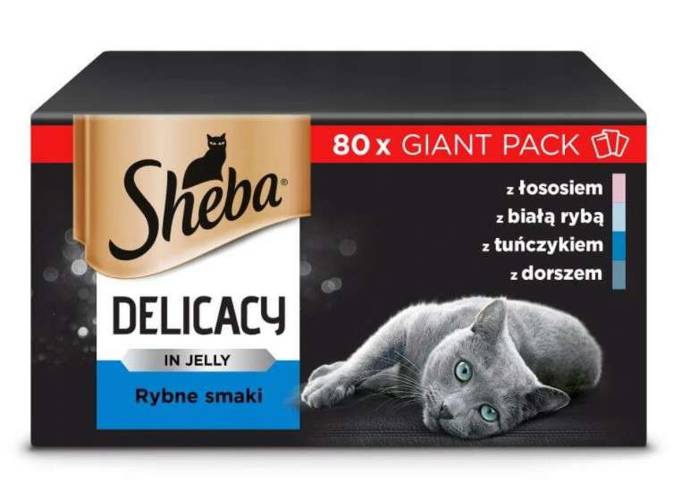 SHEBA® Delicacy Rybne smaki to kompozycja czterech starannie skomponowanych dań z rybą. Delikatne płatki zanurzone w smakowicie rozpływającej się galaretce z Łososiem, z Tuńczykiem, z Białą rybą oraz z Dorszem zostały stworzone we współpracy z lekarzami weterynarii i naukowcami z Instytutu WALTHAM™. Dzięki temu powstała kompletna i zbilansowana karma, która zapewni Twojemu kotu wszystko, czego potrzebuje do codziennego funkcjonowania. Każda z saszetek to idealna porcja na jeden posiłek.
