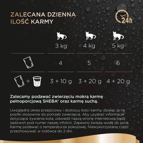 Zalecamy podawać pełnoporcjową mokrą karmę dla kota SHEBA® oraz suchą karmę dla kota.