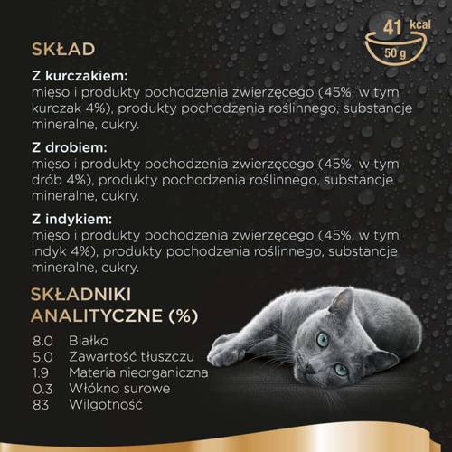 - Naturalny wygląd - Delikatne kawałki jedzenia dla kota, o wyjątkowej teksturze, w jedwabistym sosie, opracowane z wysokiej jakości składników naturalnego pochodzenia.