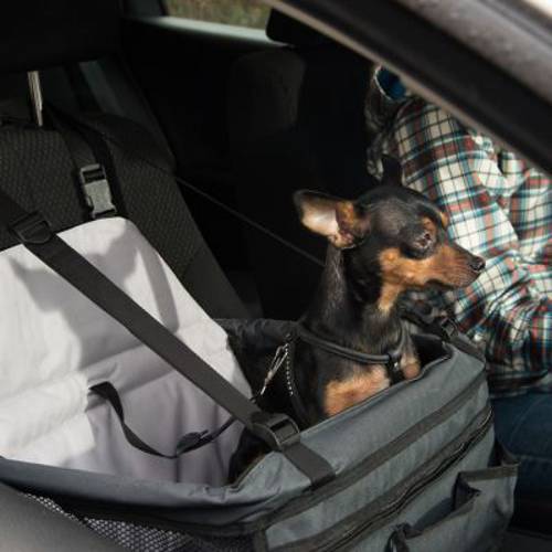 - Siedzisko samochodowe dla psów o wadze do 13 kg do zamontowania na fotelu pasażera z przodu lub z tyłu.