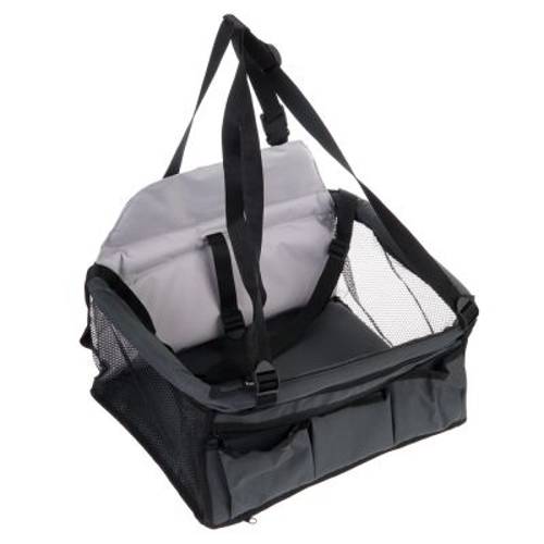Siedzisko samochodowe Booster to bezpieczne miejsce dla Twojego pupila w czasie jazdy samochodem. Dzięki niemu możesz mieć pupila przez cały czas blisko siebie. Stabilny transporter z oknami z siateczki po bokach został wykonany z odpornego na zniszczenia nylonu i zaopatrzony został w solidny metalowy stelaż. Siedzisko samochodowe Booster nadaje się doskonale dla psów o wadze do 13 kg. Za sprawą regulowanych bezstopniowo pasków z zapięciami klikowymi z łatwością przymocujesz siedzisko na zagłówku, oparciu czy pasach bezpieczeństwa w swoim samochodzie, zarówno na przednim, jak i tylnym siedzeniu.Stabilna konstrukcja oferuje bezpieczeństwo, także przy pokonywaniu ostrych zakrętów czy gwałtownym hamowaniu. Smycz z zapięciem karabinkowym zadba o to, by pupil nie wyskoczył z siedziska. Wyjmowane podłoże i ściana tylna wyściełane zostały tworzywem piankowym, dzięki czemu także przy długich dystansach Twój pupil będzie mógł cieszyć się 100% wygodą. Dzięki praktycznym kieszeniom na przodzie siedziska potrzebne akcesoria czy smakołyki będziesz mieć zawsze pod ręką. W razie potrzeby siedzisko można zamienić w transporter oraz w celu przechowywania złożyć , oszczędzając dużo miejsca.