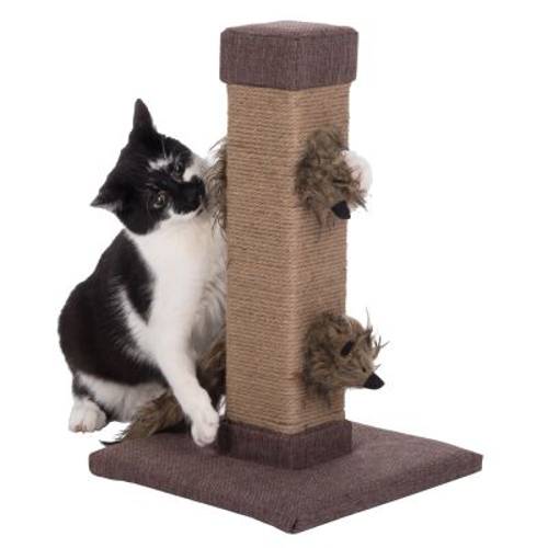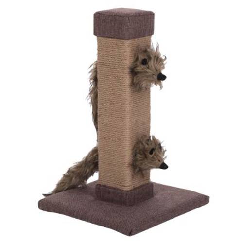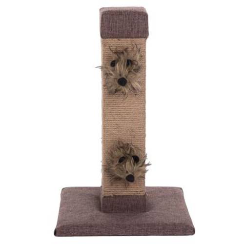 Kwadratowy drapak owinięty wytrzymałą liną z juty, 2 zabawkowe fretki wypełnione pudrem z liści matatabi (Actinidia polygama), zachęcają do zabawy. Wymiary, wys. x dł. x szer.: 48 x 29 x 29 cm
