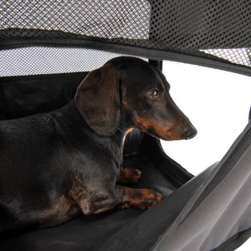 - Budka nie jest przystosowana do transportu psów lub kotów. Służy jako schronienie i miejsce do spania w domu, na wycieczkach, wystawach czy zawodach. Mobilna buda nie nadaje się do trzymania zwierząt pod nieobecność właściciela, ponieważ istnieje ryzyko, że zwierzę zniszczy materiał i ucieknie.