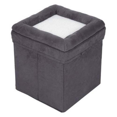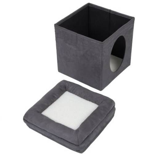 Składana kostka służąca jako miejsce do spania lub chowania się, z jakościowych materiałów, wyższa krawędź umożliwia wtulenie się, powierzchnia do leżenia z miękkiego pluszu, idealna podczas podróży
