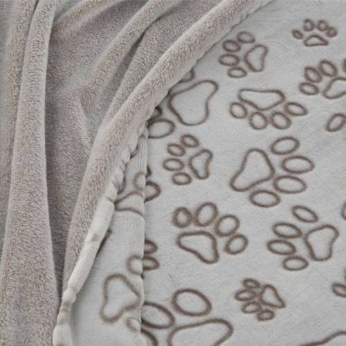 Ekstremalnie miękki i miły w dotyku kocyk z mikrofazy (mikrowłókna) dla psów i kotów, ze wzorem w kształcie łap, dostępny w dwóch różnych kolorach i rozmiarach