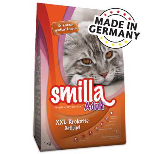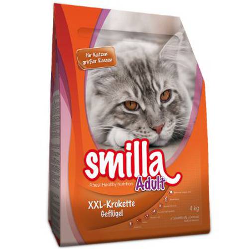 Smilla Adult XXL z kurczakiem to karma to duże krokiety dla kotów ras dużych, z ekstraktem z małży, który wspomaga stawy, i niezbędnymi kwasami tłuszczowymi, z formułą przeciw kłaczkom