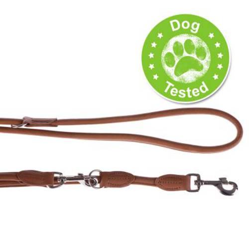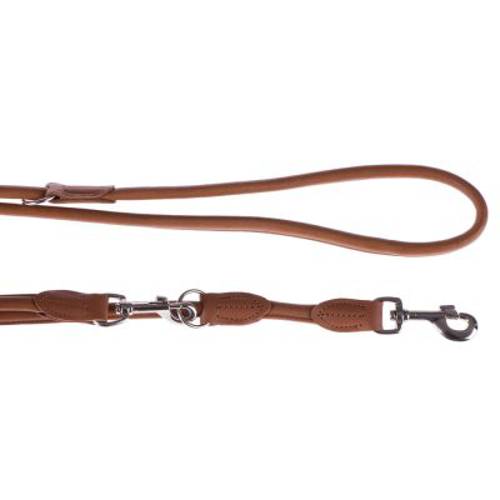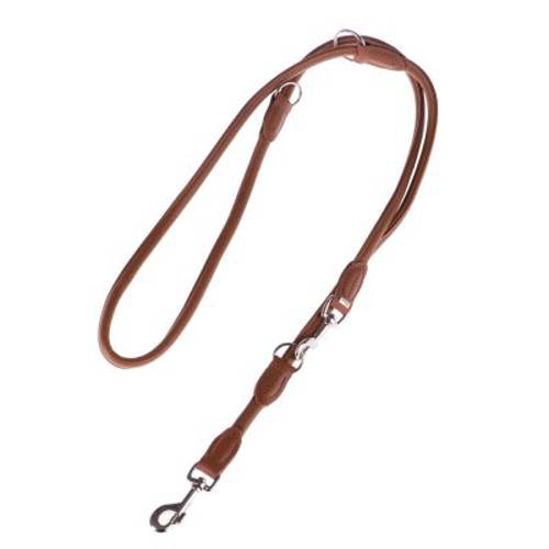 Smycz potrójnie regulowana, z miękkiej skóry łosia, podszyta na okrągło, co chroni sierść psa, w kolorze koniaku