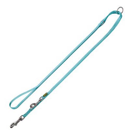 Idealne uzupełnienie obroży i szelek z serii Tripoli marki HUNTER: regulowana smycz Tripoli, podobnie jak pozostałe akcesoria z tej kolekcji, charakteryzuje się wesołym, kolorowym designem, a także praktycznymi, przydatnymi na co dzień funkcjami.Prezentowana smycz dla psa w przyjaznym błękitnym kolorze odbija światło w kolorach tęczy i doskonale nadaje się dla szczeniąt i małych psów. Trzystopniowa regulacja długości jest możliwa za pomocą karabińczyka i pierścieni, dzięki czemu smycz można w pełni dostosować do własnych potrzeb. Regulowana smycz Tripoli marki HUNTER wykonana jest z wytrzymałego na intensywne użytkowanie nylonu. Materiał ten jest odporny na działanie warunków atmosferycznych, stabilny wymiarowo i przyjemnie miękki. W razie potrzeby szybkoschnącą powierzchnię można łatwo wytrzeć – dzięki temu smycz jest szybko ponownie czysta i gotowa do użycia.