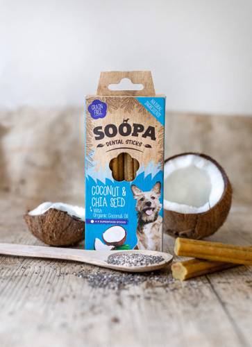 Olej kokosowy to pożywienie bogate w kwasy tłuszczowe MCT, które, jak wykazały badania, pomagają w prawidłowym funkcjonowaniu mózgu psa, podczas gdy nasiona chia są doskonałym źródłem kwasów tłuszczowych Omega 3, które mają korzystny wpływ na zdrową sierść. Kokos jest bogaty w błonnik, który wspiera zdrowy układ trawienny, dzięki czemu Twój pies jest zdrowy i szczęśliwy. Proste, smaczne, pożywne i co najważniejsze psy je uwielbiają!