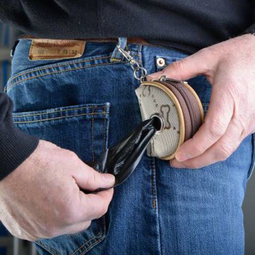 Elegancki pojemnik z woreczkami na odchody z mocowaniem na karabińczyk, szybki i proste usuwanie odchodów psa, kolor: beżowy. Dł. x szer. x wys.: 8 x 2,5 x 6 cmPraktyczny, ale i stylowy pojemnik Superbone z woreczkami na psie odchody. Wygląda jak mały portfel i z łatwością zamocujesz go do smyczy l…