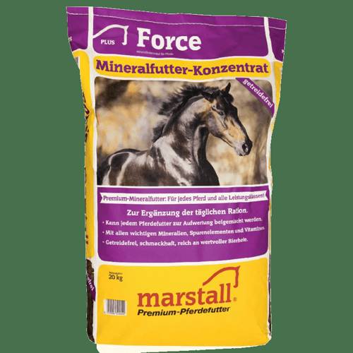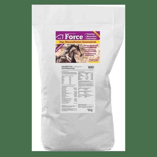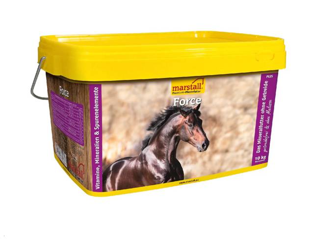 Force to kompletny i uniwersalny preparat mineralno-witaminowy w skoncentrowanej dawce. Optymalne proporcje składników odżywczych pozwalają na uzupełnianie podstawowych dawek paszy dla każdego konia niezależnie od tego, jaki rodzaj pracy wykonuje. Skład suplementu uzupełniono także o elektrolity dla koni, wartościowe białko i aminokwasy, dzięki czemu nie ma potrzeby stosowania dodatkowych preparatów.