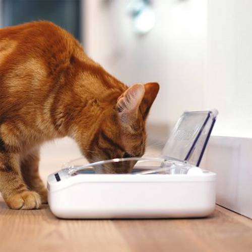 Hermetyczny pojemnik na miski na pokarm marki Sure Petcare to nowa forma karmienia kotów lub małych psów. Dzięki innowacyjnemu czujnikowi ruchu pokrywa otwiera się tylko wtedy, gdy Twój pupil znajdzie się w zasięgu działania czujnika. Gdy tylko zwierzę opuści zasięg działania czujnika, pokrywa zamyka się automatycznie.Ponadto elastyczna, hermetyczna, gumowa uszczelka chroni karmę przed wysychaniem i zachowuje jej świeżość na dłużej, przyczyniając się do jej ekonomicznego wykorzystania.