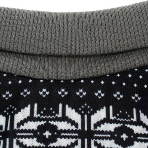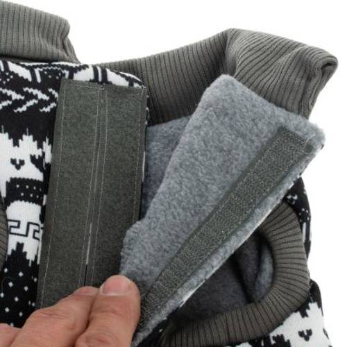 Ten klasyczny sweterek dla psa w modnym norweskim stylu, z zimowymi motywami to atrakcyjne wdzianko na zimne pory roku. Czarno-biały materiał wierzchni z drobnym ściegiem jest w całości utrzymany w norweskim stylu ze wzorkami śnieżynek i reniferów. Niezwykle miękka, jasnoszara podszewka z polaru zapewni Twojemu czworonogowi wysoki komfort noszenia i błogie ciepło. Ten modny, norweski sweterek posiada szary golf i ściągacze przy wycięciach na nogi i w obwodzie brzucha. Łatwe zakładanie i zdejmowanie sweterka zapewnia zapięcie na dwurzędowy rzep, umożliwiający jednocześnie regulację rozmiaru.Sweterek dla psa, z norweskim wzorem w skrócie: