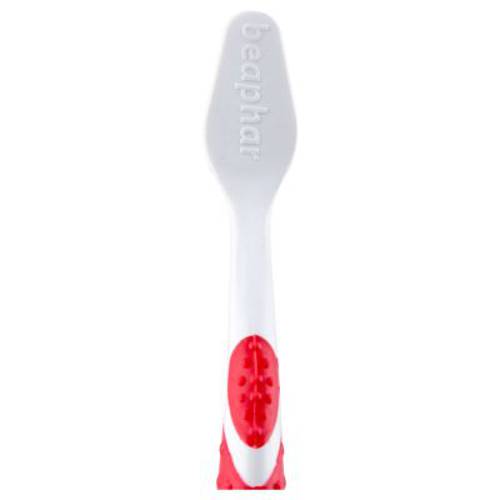 Szczoteczka do zębów beaphar dobrze leży w dłoni, ma dwie różne końcówki. Gumowa powłoka zapewnia stabilność szczoteczki w czasie mycia. Dzięki temu szczoteczkę można używać u małych i dużych psów, ponieważ dopasowuje się ona idealnie do zębów i dociera nawet do trudno dostępnych miejsc. Miękka część szczoteczki jest delikatna dla dziąseł.