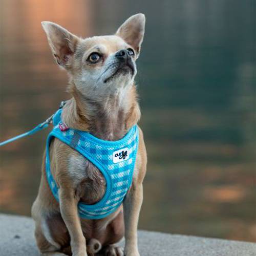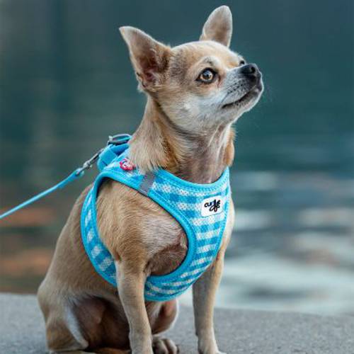 Szelki Curli Vest Air-Mesh + smycz Basic, błękitne caro w skrócie: