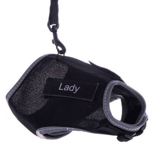 Miękkie szelki w rozmiarze XL, z zapięciem na rzep i zatrzask, regulowane, odblaskowe, naklejki ,,Lady'' i ,,Gentleman", obwód szyi: 25 do 32 cm, obwód brzuch: 36 do 54 cm, smycz 120 cm