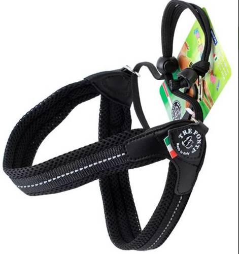 Szelki Mesh Regulowane Na Plecach Czarne - Tre Ponti to szelki dla psów, kotów w każdym wieku polecane dla małych i średnich ras, bezpieczne także dla królików, fretek itp.