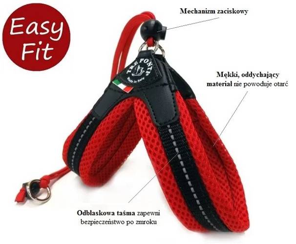 Szelki Mesh Regulowane Na Plecach Czerwone - Tre Ponti to szelki dla psów, kotów w każdym wieku polecane dla małych i średnich ras, bezpieczne także dla królików, fretek itp.