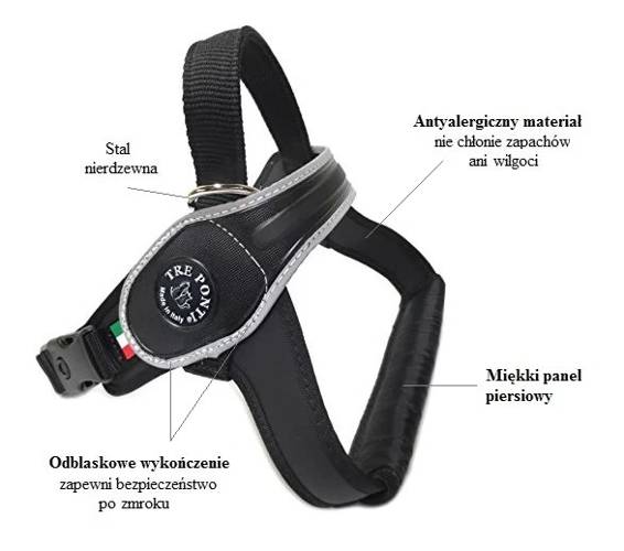 Szelki Primo Czarne Z Odblaskiem - Tre Ponti - najważniejsze cechy: