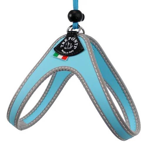 Szelki Regulowane Na Plecach Niebieskie Z Odblaskiem - Tre Ponti to szelki dla psów, kotów w każdym wieku polecane dla małych i średnich ras, bezpieczne także dla królików, fretek itp.
