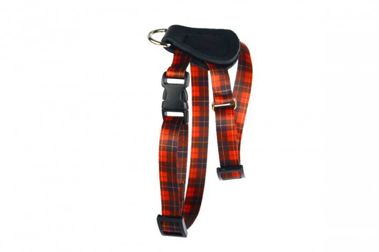Szelki ze skórą - Szkocka Krata 0786 LED 20MM 36-60CM