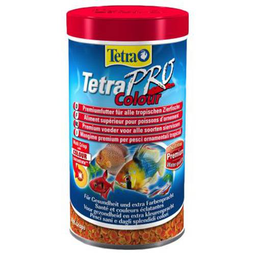 Regularnie podawany pokarm w płatkach Tetra ProColour sprzyja naturalnemu wybarwieniu tropikalnych ryb akwariowych i jednocześnie zapewnia zwierzętom wszystkie ważne składniki odżywcze. Pokarm powstał w procesie delikatnej obróbki, a dzięki innowacyjnej postaci płatków w kształcie chipsów prawie w ogóle nie zanieczyszcza wody i jest doskonale przyswajany przez ryby.Kolorowe rybki to główna atrakcja każdego akwarium. Stosując prezentowany pokarm premium Tetra ProColour, w znacznym stopniu przyczyniasz się do naturalnego intensywnego wybarwienia zwierząt, a zarazem masz pewność, że Twoje rybki otrzymują wszystkie niezbędne do życia składniki odżywcze. Ten pokarm w płatkach jest przeznaczony dla wszystkich tropikalnych ryb akwariowych.