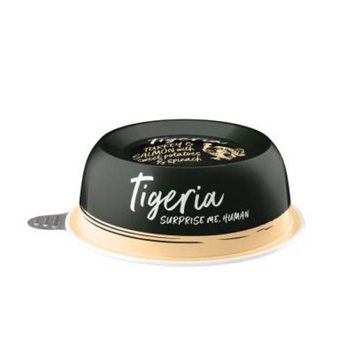 Soczysta rozkosz dla podniebienia z zaskakującym nadzieniem z warzyw, owoców lub wykwintnego łososia, bez zbóż, konserwantów i barwników, bardzo wysoka akceptacjaTigeria to bezzbożowa karma premium dla kotów, która przekonuje niepowtarzalną kompozycją soczyście mięsnego rarytasu z delikatnym nadzie…