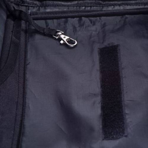 Ta stylowa, wodoodporna torba transportowa jest idealna dla zapewnienia bezpiecznego transportu dla Twojego zwierzaka ważącego do 7 kilogramów. Po bokach posiada dwa duże wejścia oraz dodatkowe wejście u góry, zamykane za pomocą zamka błyskawicznego. Takie rozwiązanie ułatwia umieszczanie i wyjmowanie zwierzęcia z torby. Poduszka z miękkim, pluszowym wypełnieniem może być przymocowana za pomocą rzepu do środka torby. Gumowe wiązania pomogą w umocowaniu wewnątrz wkładki ochronnej, by uniemożliwić się jej przesuwanie. W torbie znajdzie się odpowiednia ilość miejsca na potrzebne przybory, przysmaki itd. Na stronie frontowej znajdują się dwie kieszonki, a na tylnej kieszeń zamykana na klapkę. Nieużywaną torbę można złożyć i tym samym zaoszczędzić miejsce. Poduszkę i podłoże PVC można wyciągnąć, a następnie złożyć boczne, metalowe ramy torby.