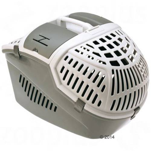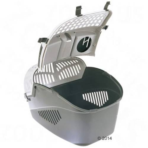 Transporter wykonany z tworzywa sztucznego, całkowicie lub częściowo otwierana pokrywa, do umocowania pasami, z otworem do głaskania oraz schowkiem, dla kotów i małych psów do 6 kg, 57 x 39 x 40 cm Szczególną cechą tego nowoczesnego transportera jest możliwość całkowitego otworzenia pokrywy jak i j…