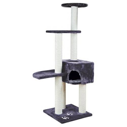 Drapak ze wzorem odciśniętej kociej łapy, dużo miejsca do leżenia, 6 słupków z sizalowym obiciem o średnicy 8,5 - 9,5 cm, dla kotów do 6 kg, dwa kolory do wyboru, dł. x szer. x wys.: 45 x 45 x 142 cm