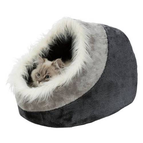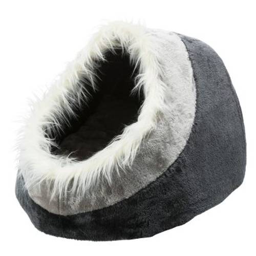 Wygodna, przytulna budka dla kotów i małych psów, idealne schronienie, wyściełane ściany, włochate wejście, miękka, wyjmowana dwustronna poduszka, antypoślizgowe wypustki, kolor ciemnoszary/jasnoszary Czas na chwilę wytchnienia! W budce Minou marki Trixie Twój kot może naprawdę wygodnie się umości…