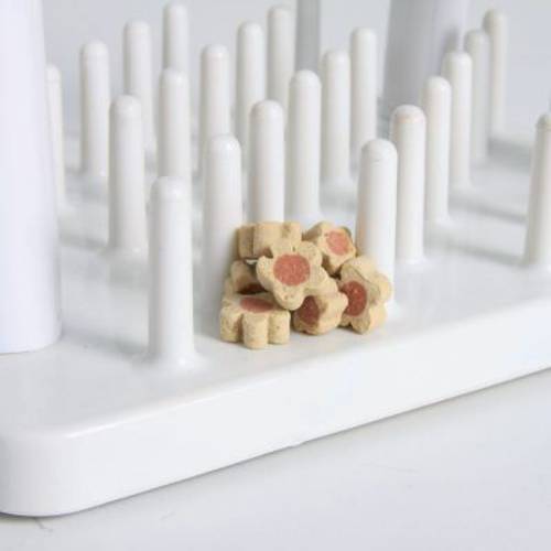 Smakołyki lub suchą karmę możesz umieścić zarówno w kubeczkach, jak i na płycie podłogowej pomiędzy wypustkami. Po odwróceniu kubeczków, przysmaki wypadają, a Twój kot musi je wydobyć spomiędzy wypustek w dolnej części zabawki.