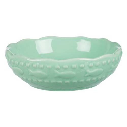 Ceramiczna miska dla kotów w modnym pastelowym kolorze - miętowym, z motywem ryb to stylowe akcesorium dla Twojego kota! Nadaje się ona perfekcyjnie zarówno do mokrej i suchej karmy oraz na wodę, a jej pojemność wynosi 250 ml. Twój pupil będzie mieć odpowiednią zastawę pod swoją ucztę!Miska została wyprodukowana z wysokiej jakości cermiki i nadaje się do mycia w zmywarce.