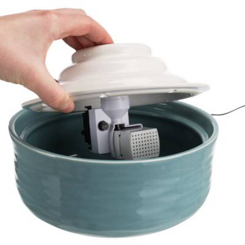 Ozdobne poidełko dla kotów i małych psów, z higienicznej ceramiki, cicho pracująca pompa, naturalne chłodzenie wody przez ciągłą cyrkulację, filtr z węglem aktywnym, Ø x wys.: 22 x 13 cm