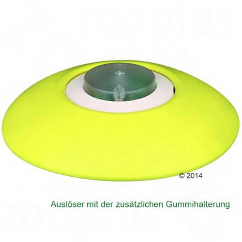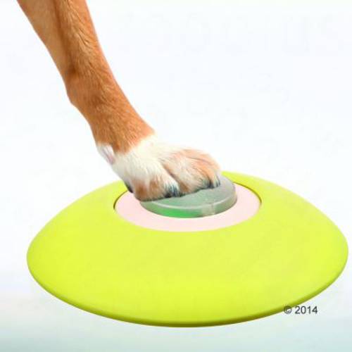 Spust to duży przycisk, który może być obsługiwany za pomocą łapy lub nosa. Możesz go umieścić zaraz przy automacie, a jeśli będziesz chciał zwiększyć poziom trudności, wystarczy go po prostu dalej przesunąć. Zasięg czujnika wynosi 40 metrów, co umożliwi Ci stawianie coraz to nowszych wyzwań psu. Możesz także umieścić automat i czujnik w osobnych pomieszczeniach, komplikując jeszcze bardziej zabawę Twojego psa.