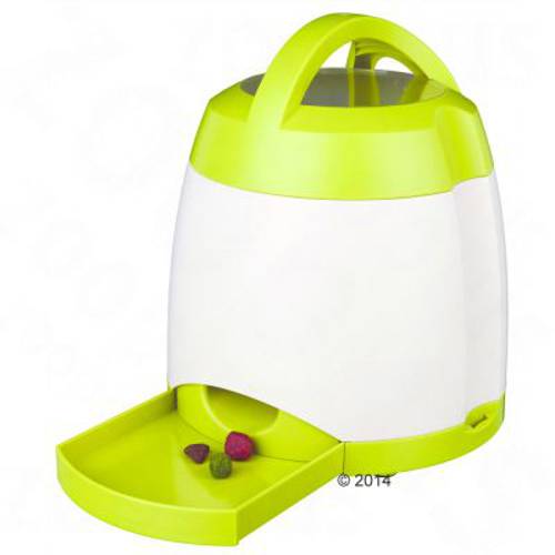 Automat na karmę dla psów, który wymaga od nich wysiłku fizycznego i umysłowego, możliwe różne poziomy trudności, ręczne dozowanie przysmaków, zasięg do 40 m, z tworzywa sztucznego