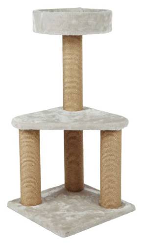 TRIXIE Drapak stojący Ivan Drapak dla kotów z legowiskiem wykończony pluszem w kolorze jasnoszarym. Słupki do drapania owinięte są sznurkiem z juty. Półki i legowisko wyłożone są miękkim materiałem, a cztery słupki wyłożone są mocnym sizalowym sznurem i zapewniają one kotu dużo miejsca do drapania i ścierania pazurów. Drapak zapewnia kotu miejsce do zabawy i odpoczynku, jak i zaspokaja naturalna kocią potrzebę drapania.